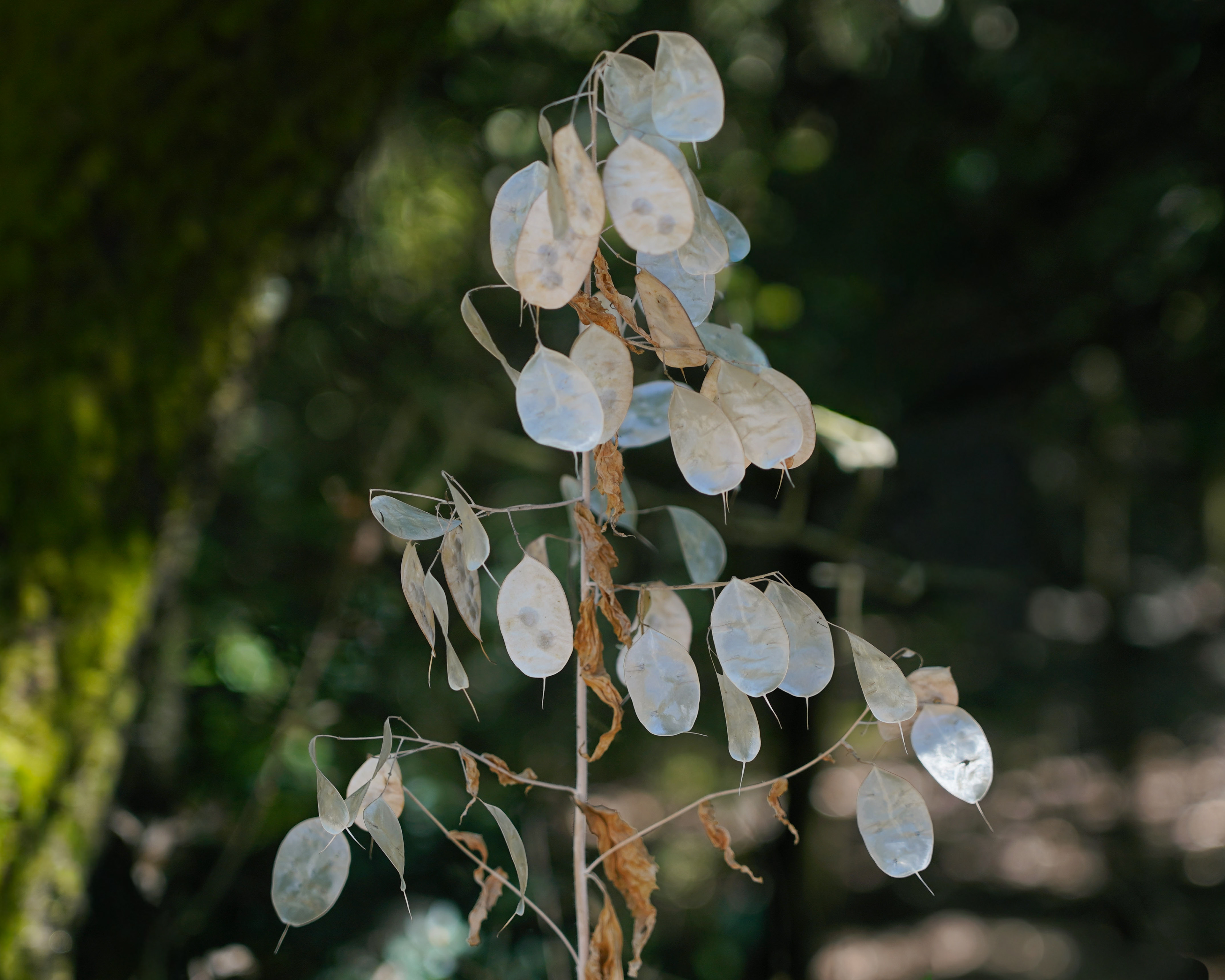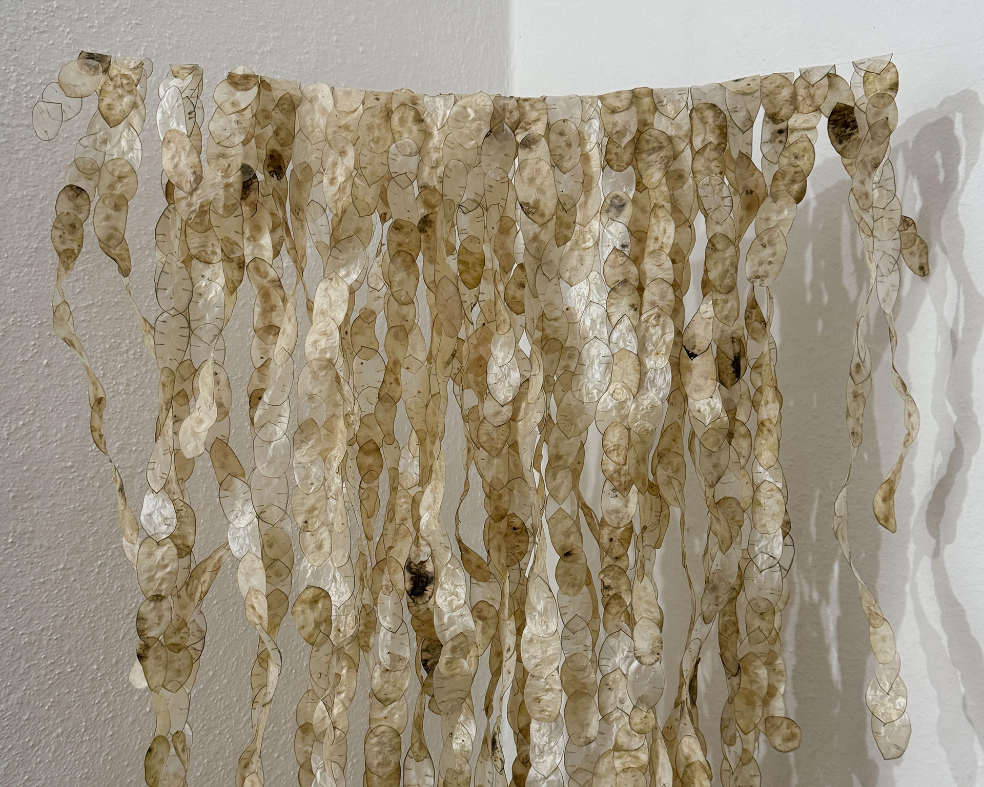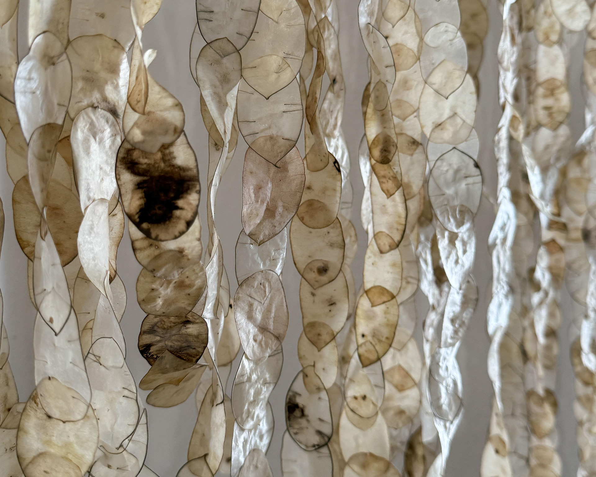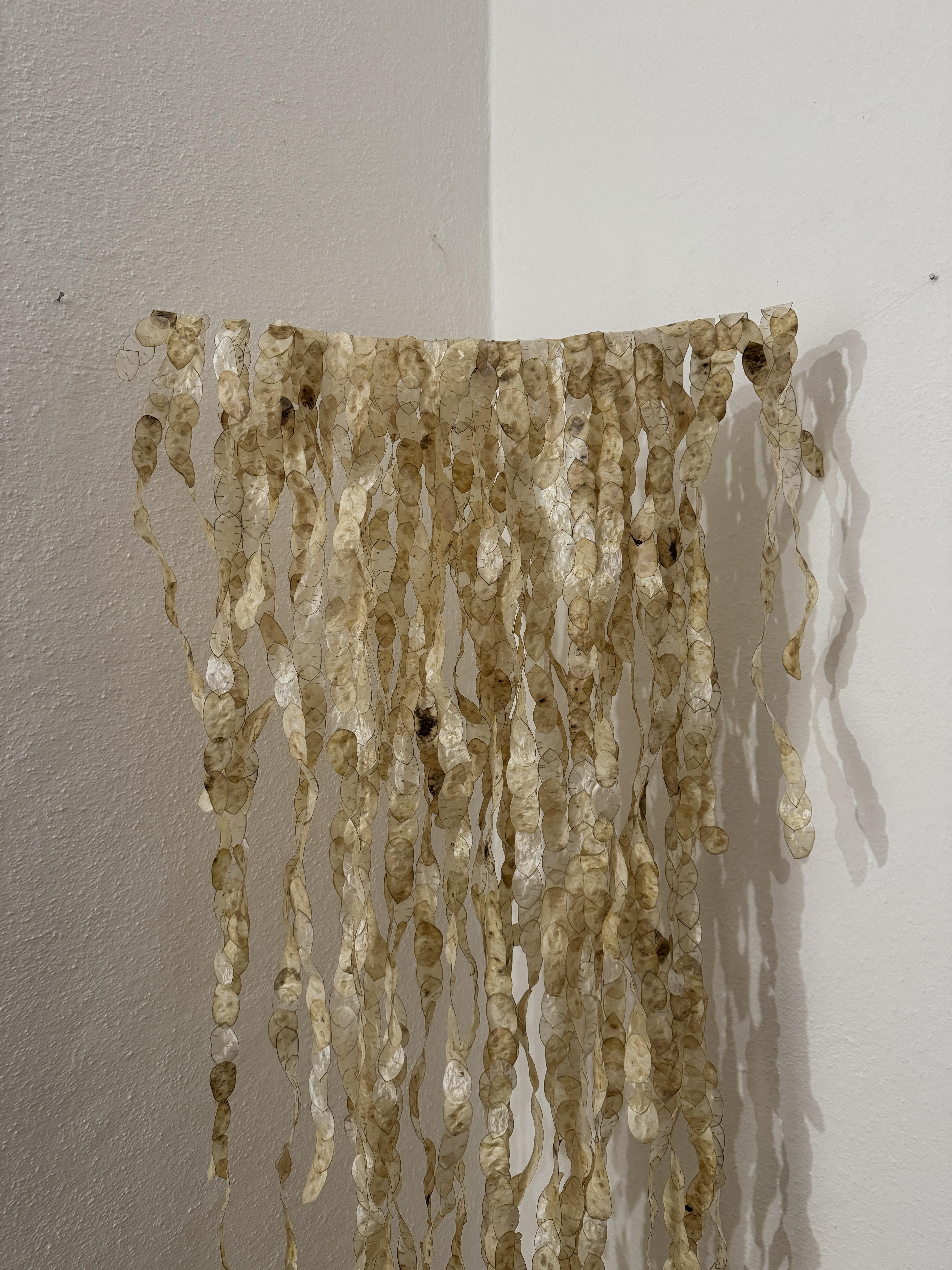 Installazione con fiori di Lunaria, progetto sviluppato durante la residenza artistica 02.RAR, “Sulle rocce”, Roccatederighi (GR).